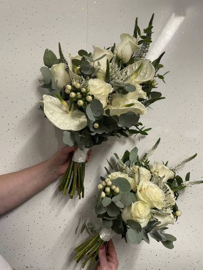 From bouquets and buttonholes to corsages, table centrepieces, pedestal arrangements and decorative venue displays, we design everything with care and attention to detail. Call us on 01776 56026 or complete the enquiry form at the bottom of this page and we will ensure your wedding flowers are beautifully prepared and delivered on time for your big day.